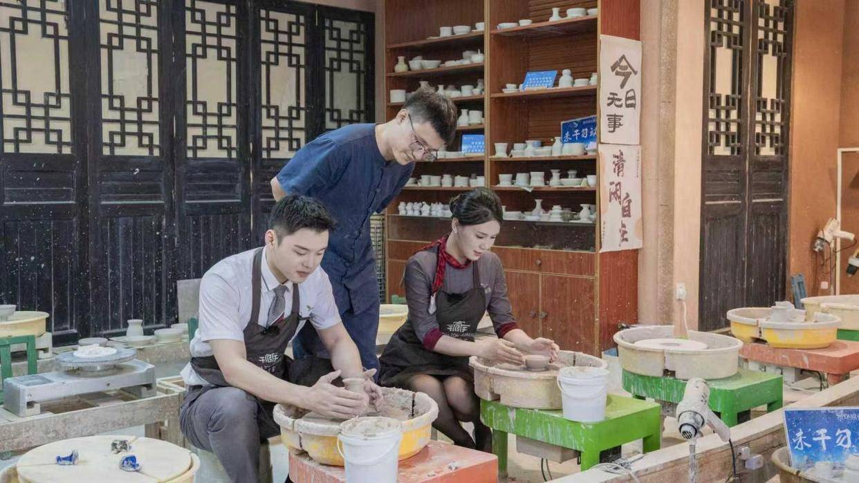 在传承人的悉心指导下,两位乘务员从揉泥、拉坯开始,亲手制作经典执壶与碗碟泥坯,待泥坯阴干后,更执笔蘸彩,在素坯上勾勒传统纹样、书写经典诗词。一笔一画间,不仅是技艺的传递,更是对千年窑火精神的深刻体悟。