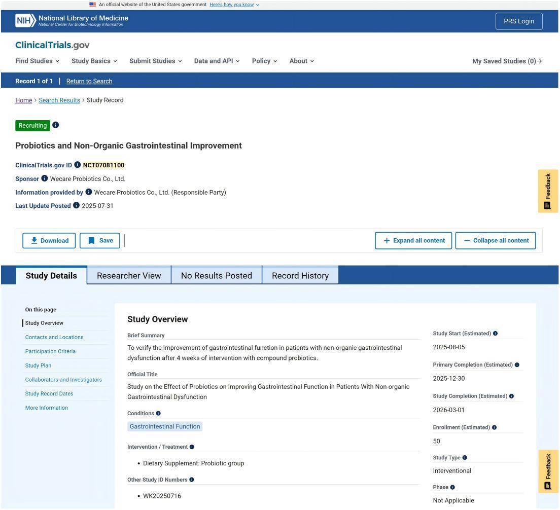 美国临床试验注册平台(国际临床注册号NCT07081100)展示
